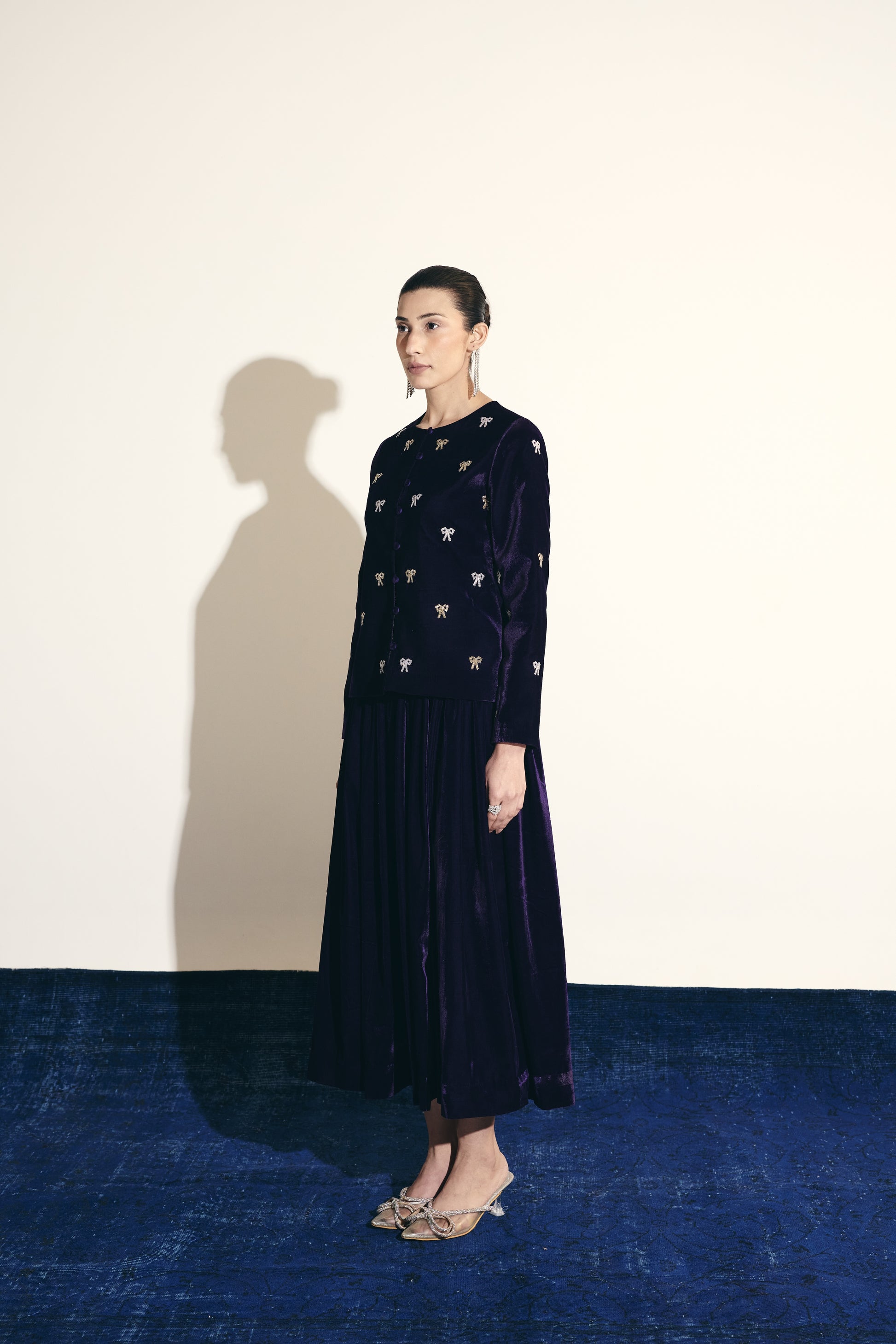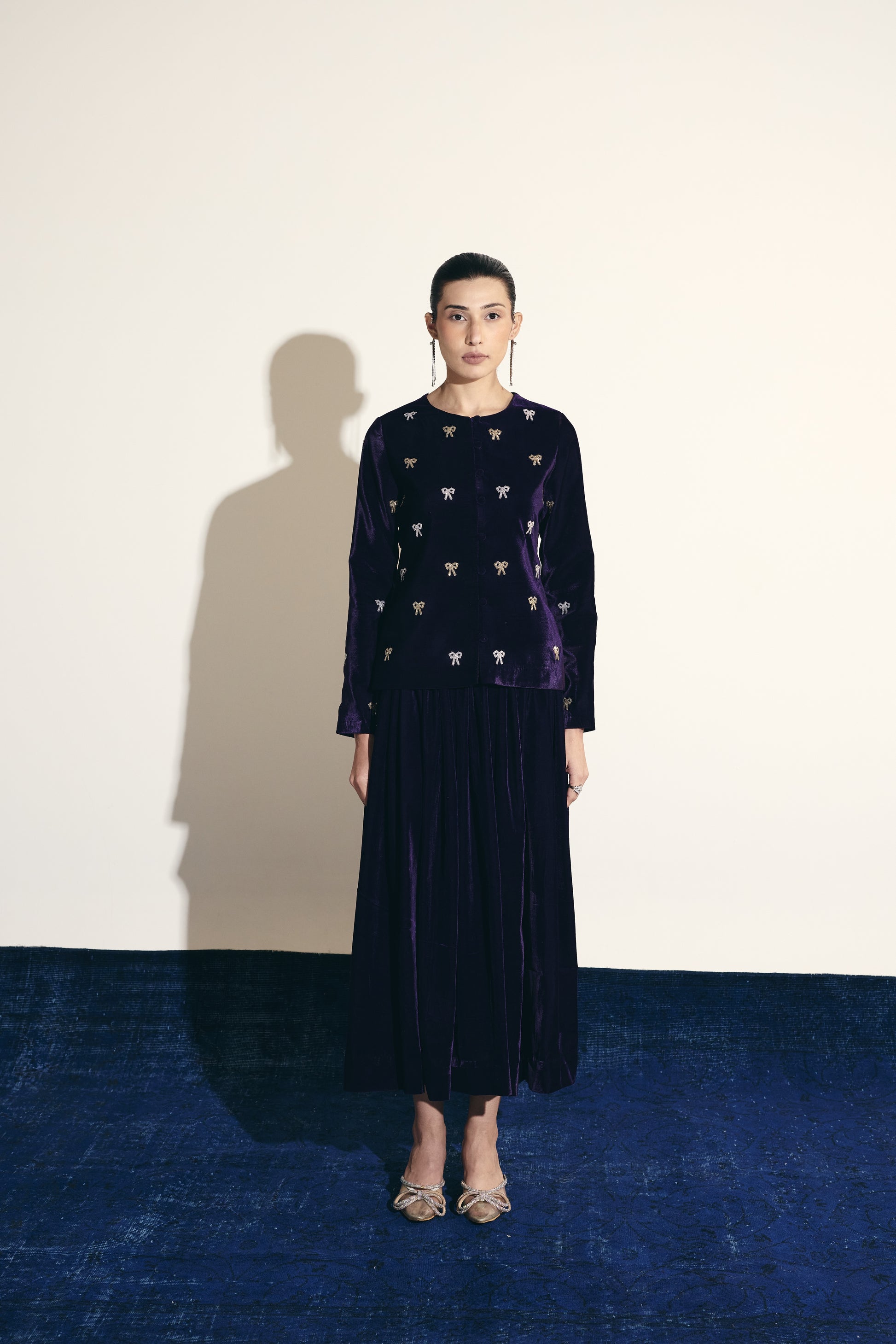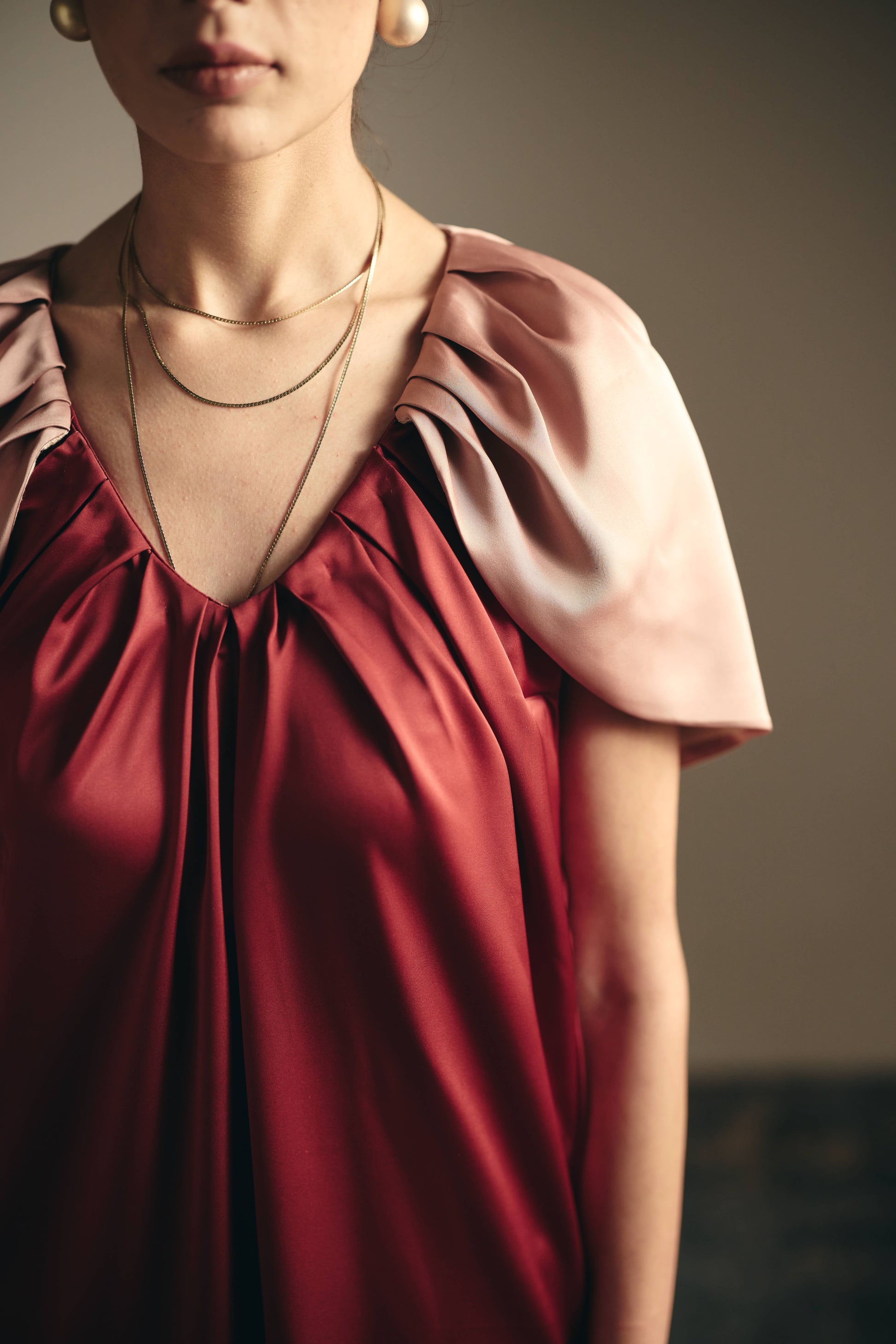 This set offers a fluid, contemporary silhouette defined by luxurious and an effortless drape. Experience a masterclass in modern femininity with this full-length satin gown. Designed for a liquid-like movement, this piece features a sophisticated play on volume and color-blocking that makes it a standout choice for high-fashion events.