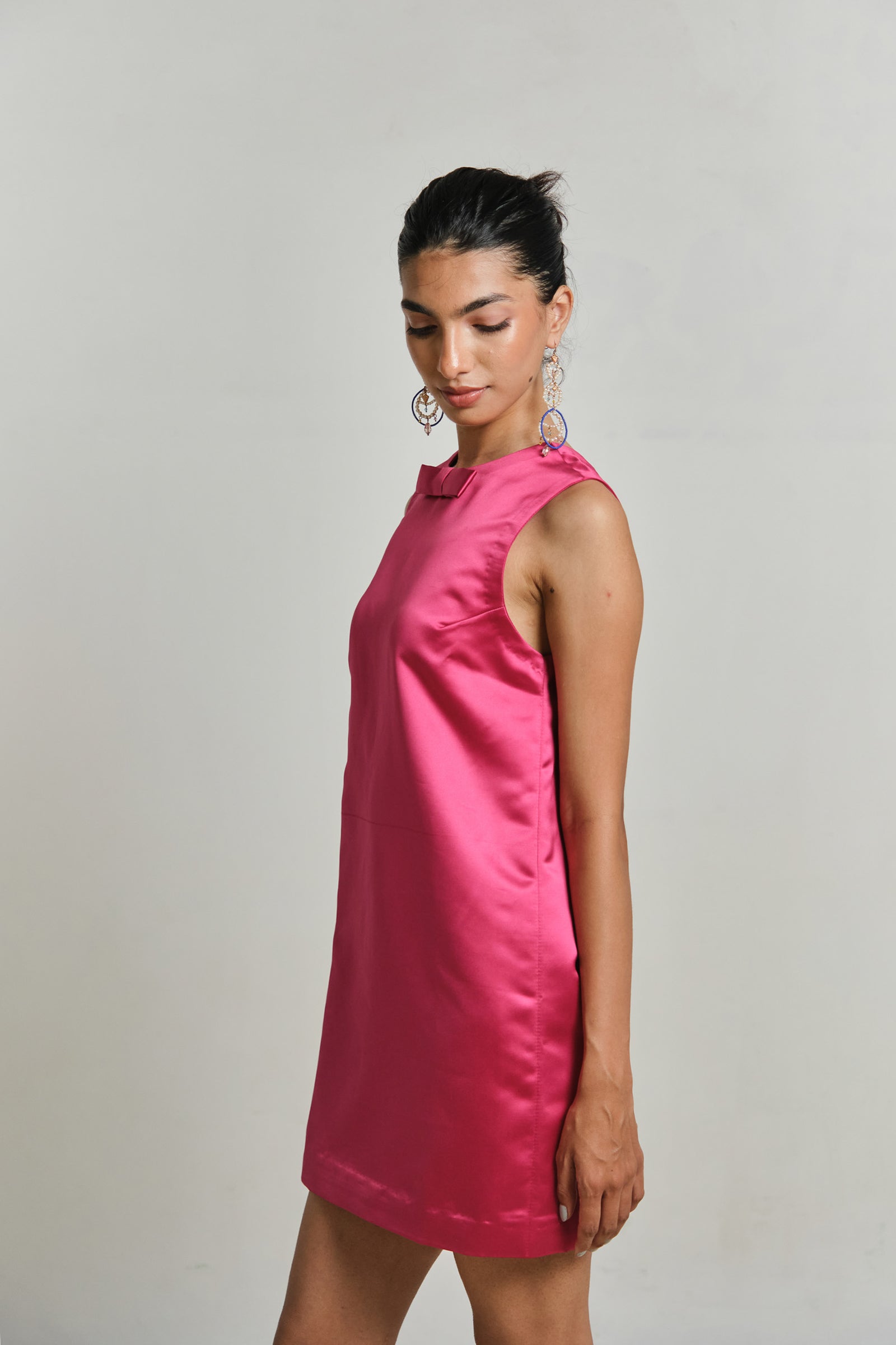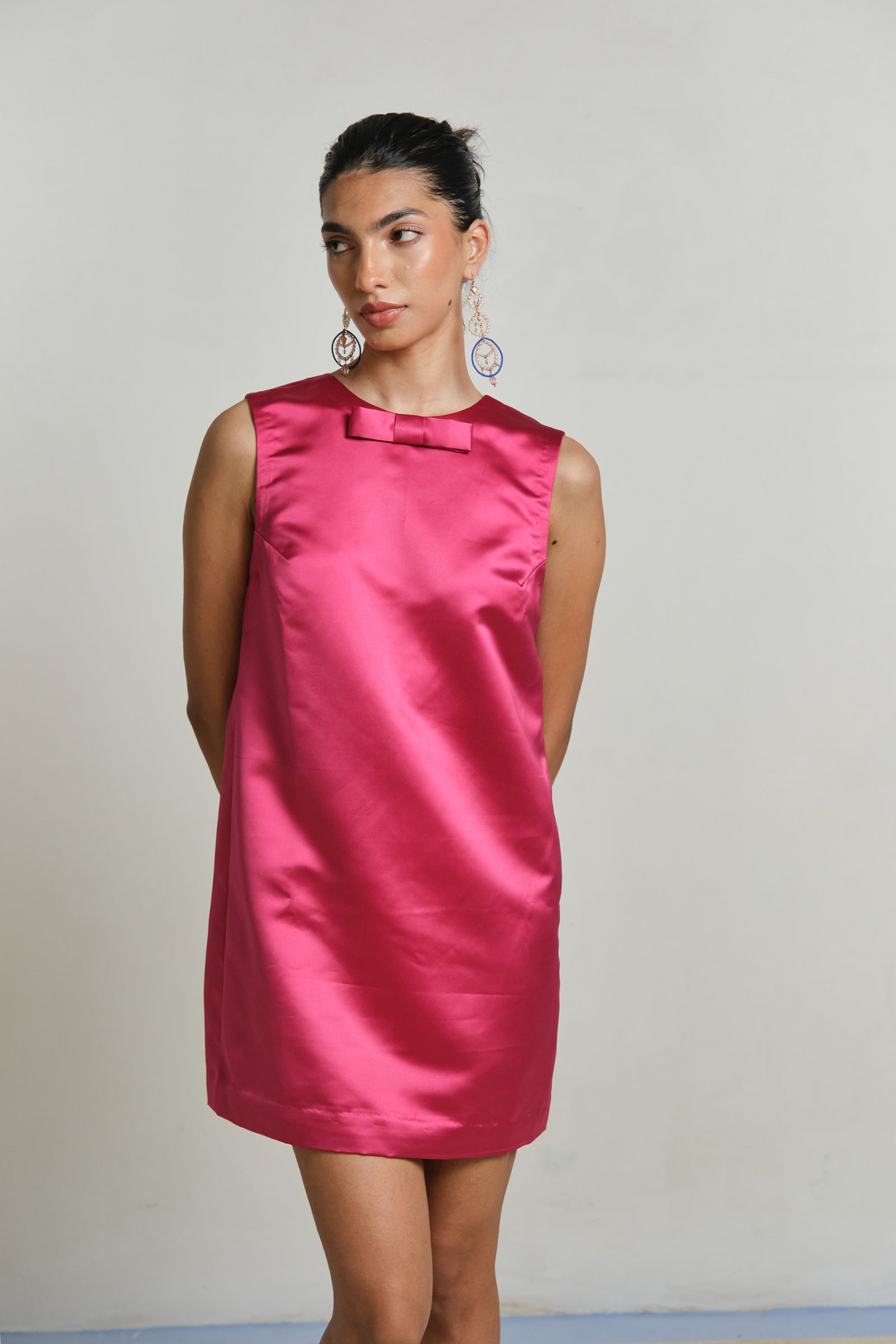 A perfect RSVP dress in premium satin. This liquid glamour mini dress is designed to feel chic and joyful. It features a sexy V-neck in the back while bows add a playful character. This dress is for every bow lover. This is also your perfect date dress.