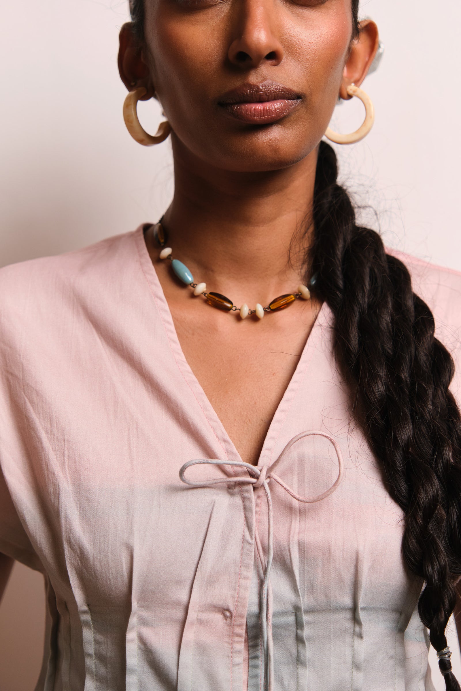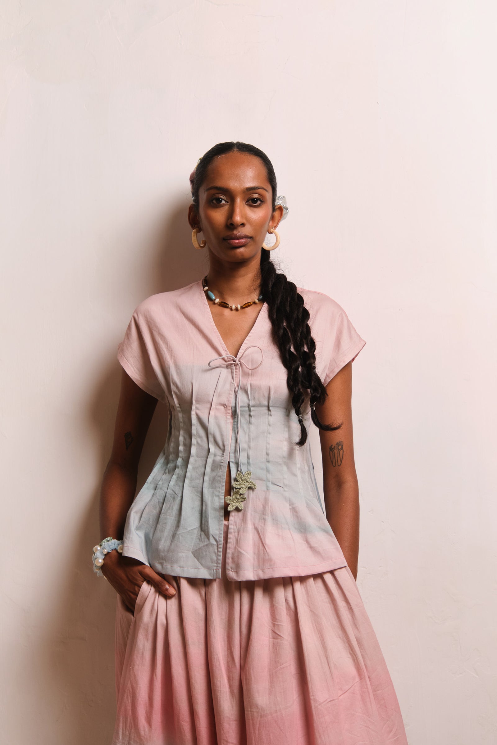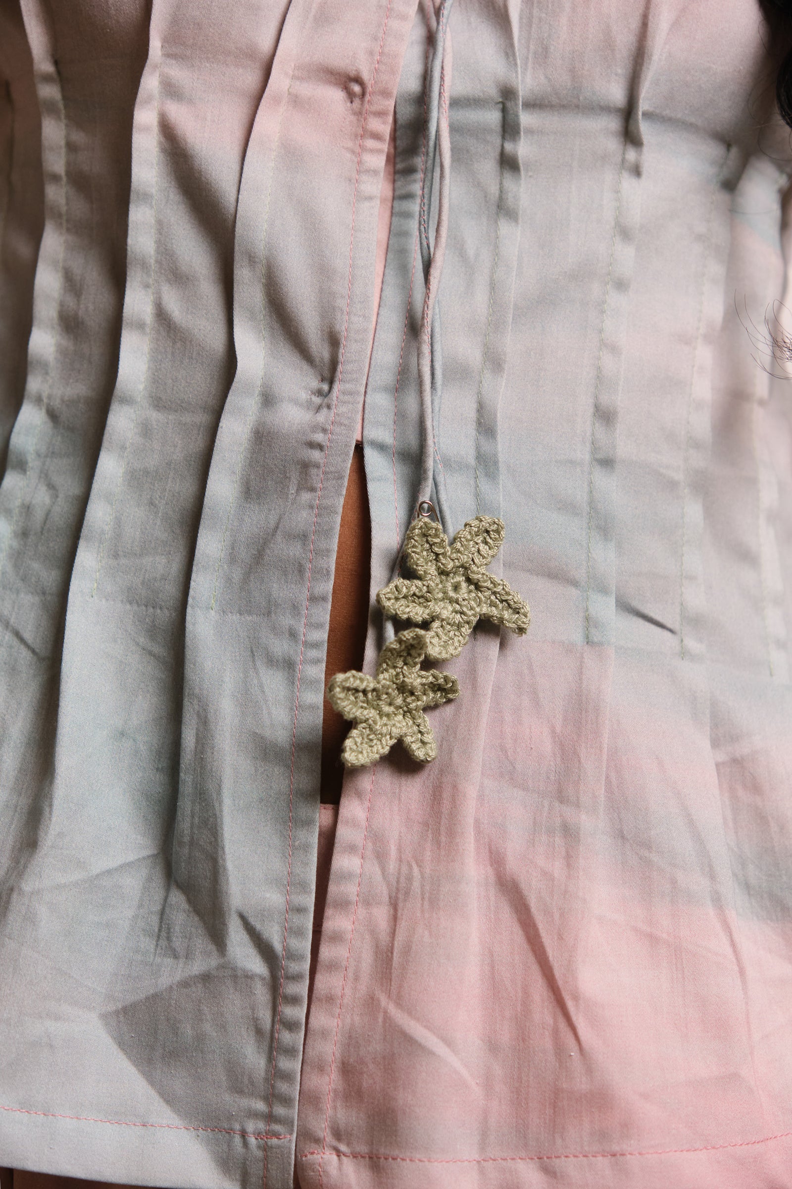 This pleated and the most comfortable top features front opening with a pair of sea shell tie ups. This blouse is in top of everyone’s mind. The pleats add sense of elegance and style to the shirt.