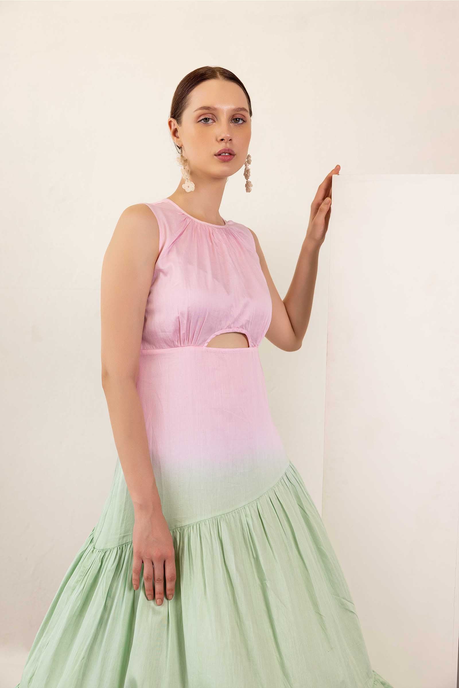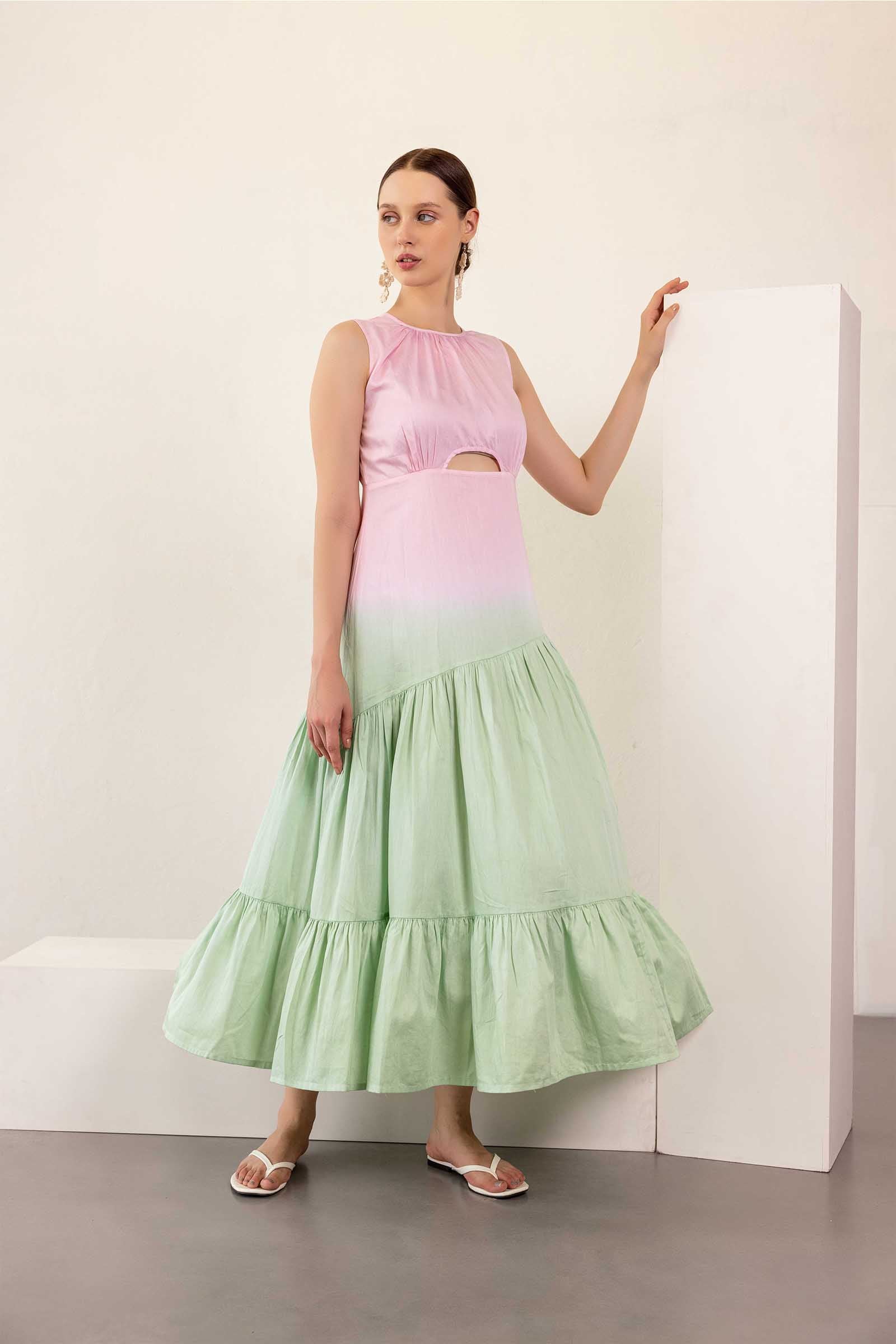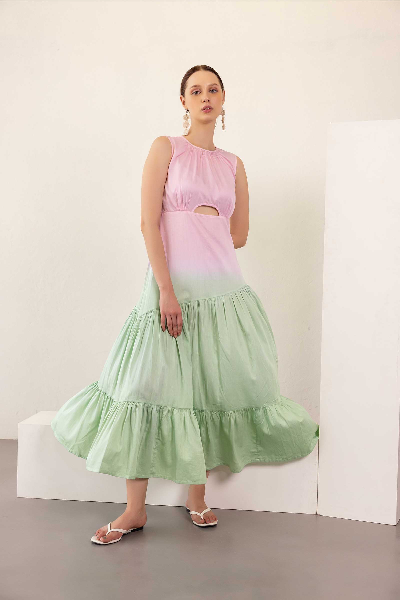 PINK AND JADE LIME SHADED CUT OUT DRESS