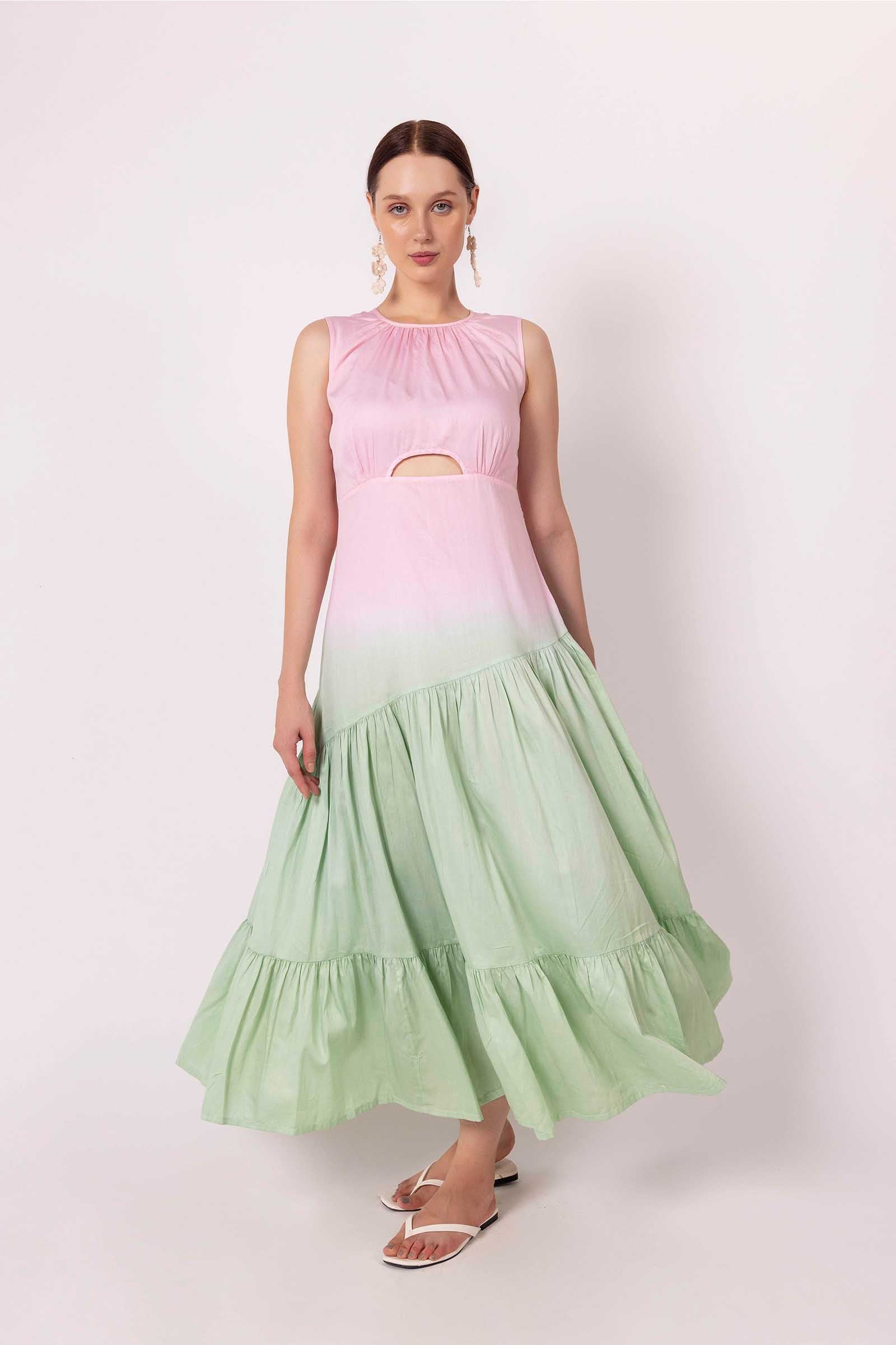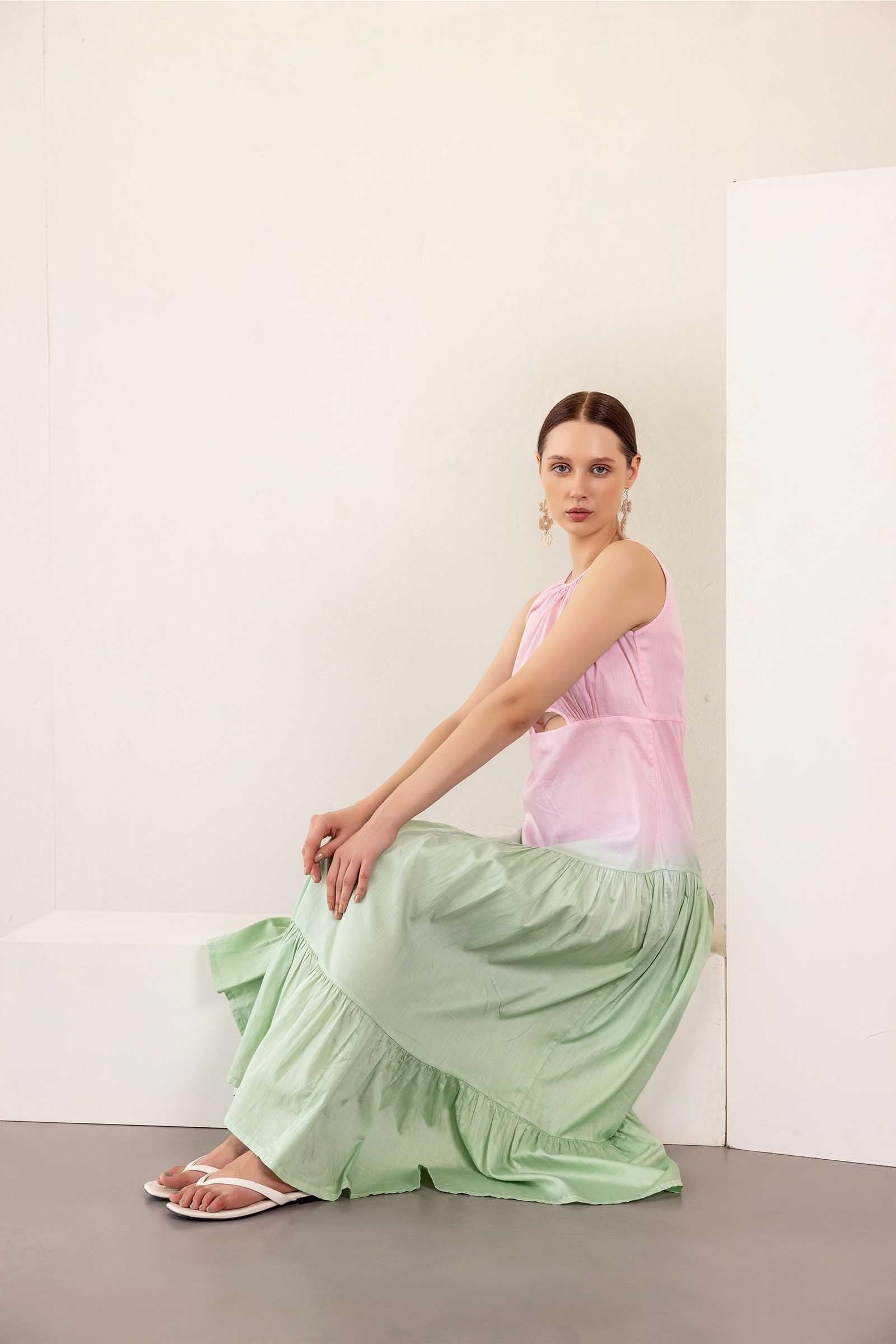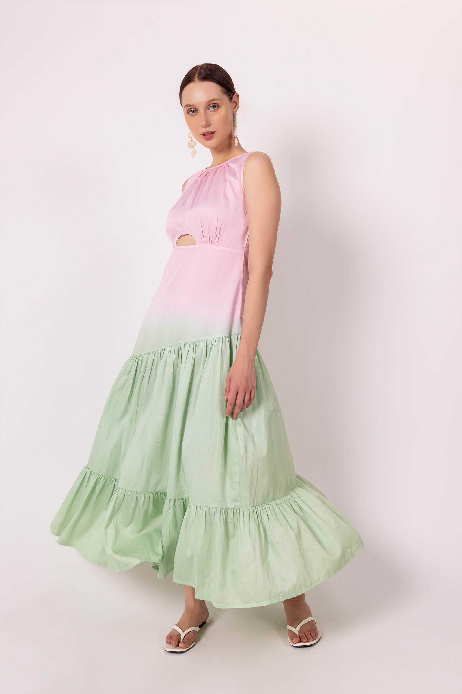 PINK AND JADE LIME SHADED CUT OUT DRESS